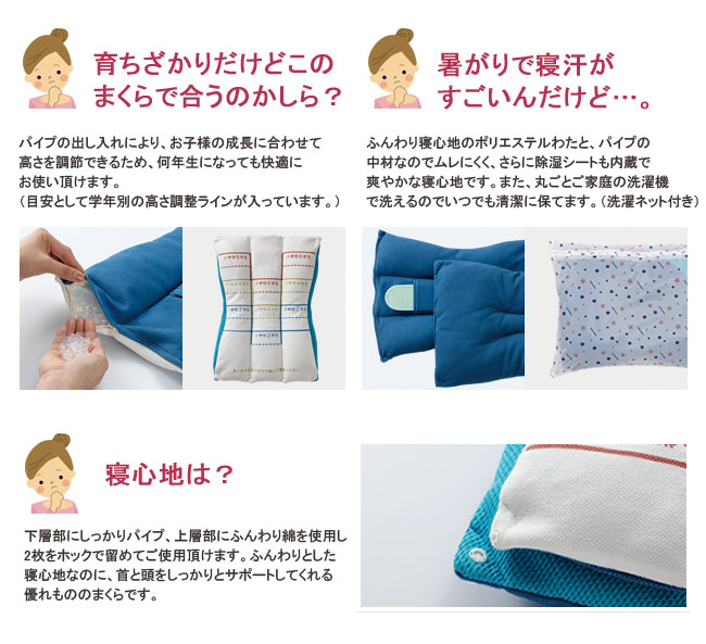 育ちざかりの子供の眠りを考え抜いて作られたまくら「ボディゼロキッズ マット」。